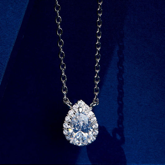 1.5 Carat Pear Drop Hidden Halo Pendant Necklace
